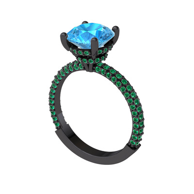 Akuamarin ve yeşil kuvars 925 ayar siyah rodyum kaplama gümüş yüzük