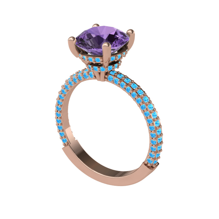 Ametist ve akuamarin 8 ayar rose altın yüzük
