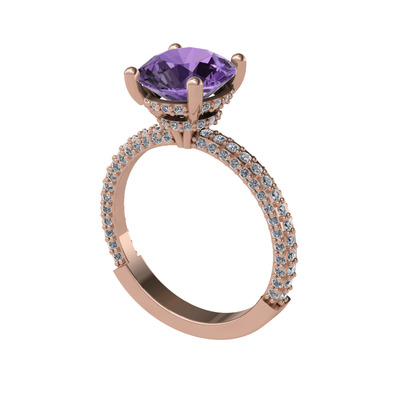 Ametist ve beyaz zirkon 14 ayar rose altın yüzük