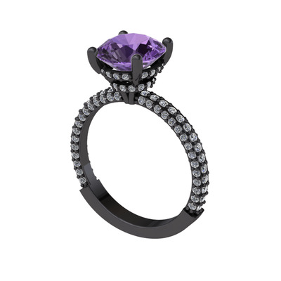 Ametist ve beyaz zirkon 925 ayar siyah rodyum kaplama gümüş yüzük