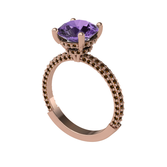 Ametist ve dumanlı kuvars 8 ayar rose altın yüzük