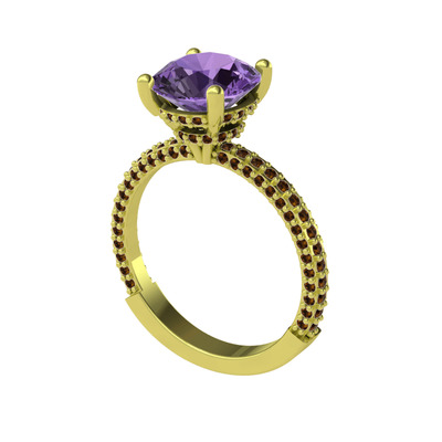 Ametist ve dumanlı kuvars 925 ayar altın kaplama gümüş yüzük