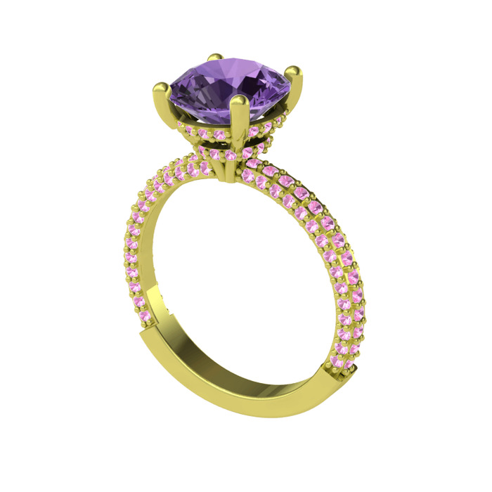 Ametist ve pembe kuvars 925 ayar altın kaplama gümüş yüzük