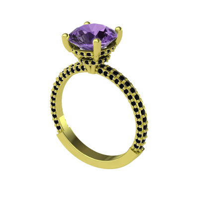 Ametist ve siyah zirkon 8 ayar altın yüzük