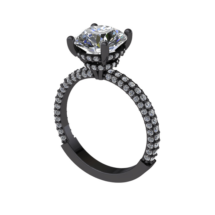 Beyaz zirkon ve pırlanta 925 ayar siyah rodyum kaplama gümüş yüzük (2.4 karat)