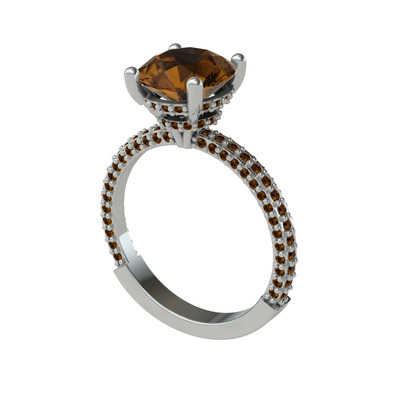Dumanlı kuvars 18 ayar beyaz altın yüzük