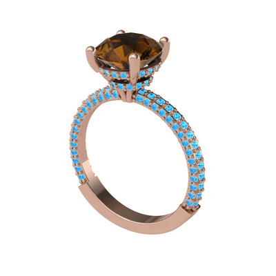 Dumanlı kuvars ve akuamarin 8 ayar rose altın yüzük