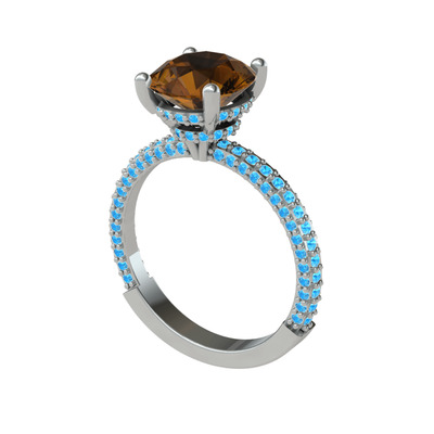 Dumanlı kuvars ve akuamarin 925 ayar gümüş yüzük
