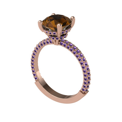Dumanlı kuvars ve ametist 8 ayar rose altın yüzük