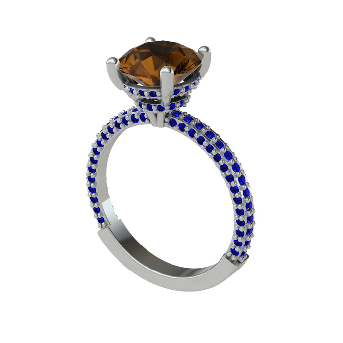 Dumanlı kuvars ve lab safir 18 ayar beyaz altın yüzük