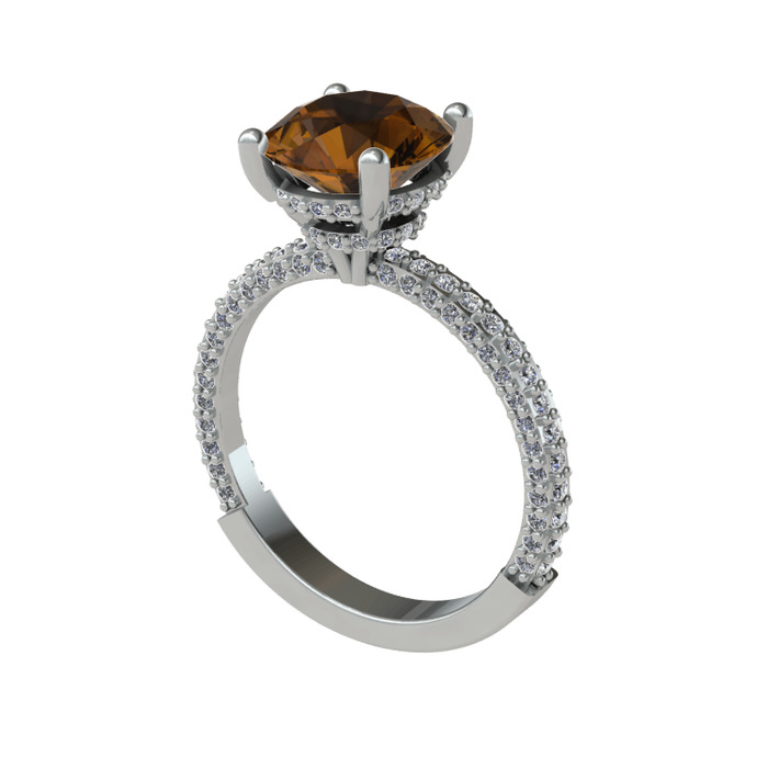 Dumanlı kuvars ve pırlanta 925 ayar gümüş yüzük (2.4 karat)