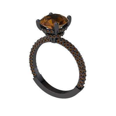 Dumanlı kuvars 925 ayar siyah rodyum kaplama gümüş yüzük