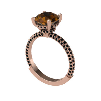 Dumanlı kuvars ve siyah zirkon 18 ayar rose altın yüzük