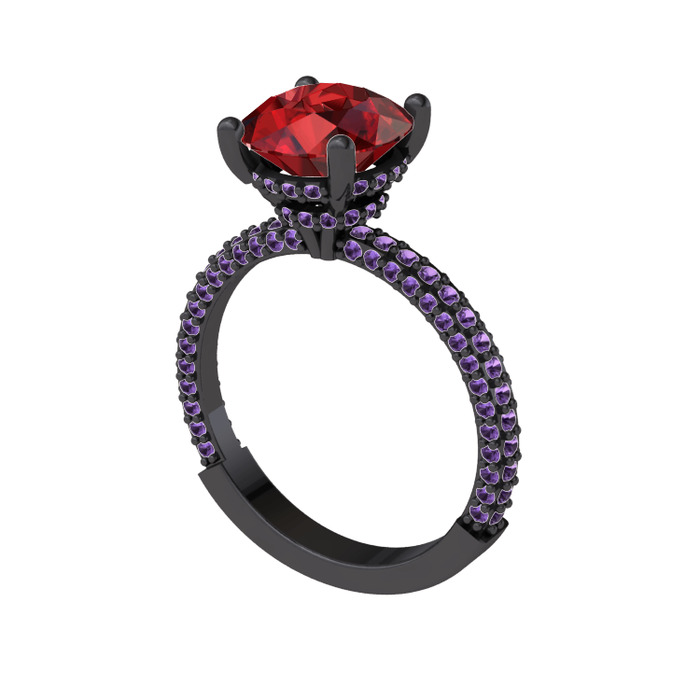 Garnet ve ametist 925 ayar siyah rodyum kaplama gümüş yüzük