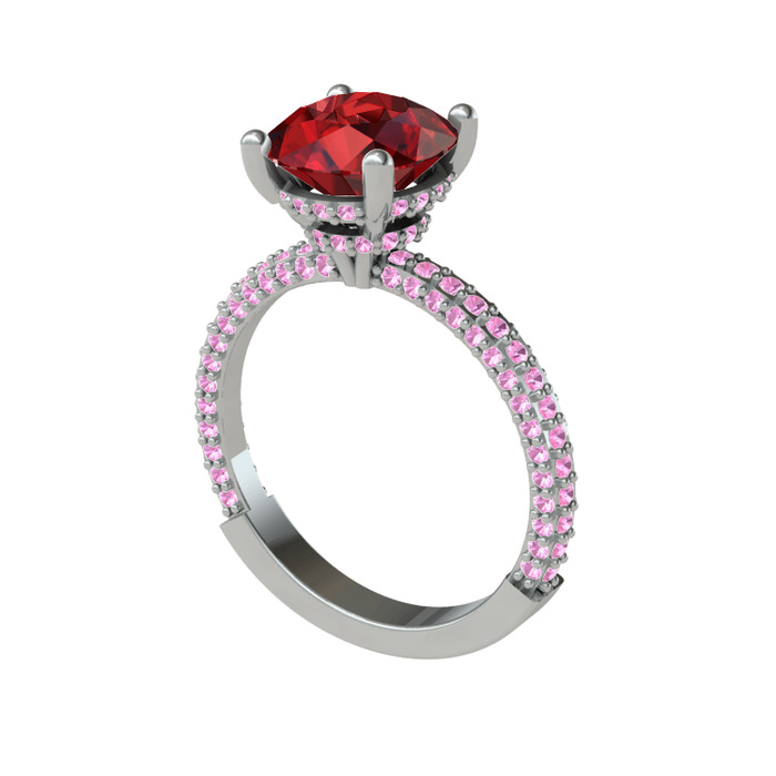 Garnet ve pembe kuvars 14 ayar beyaz altın yüzük