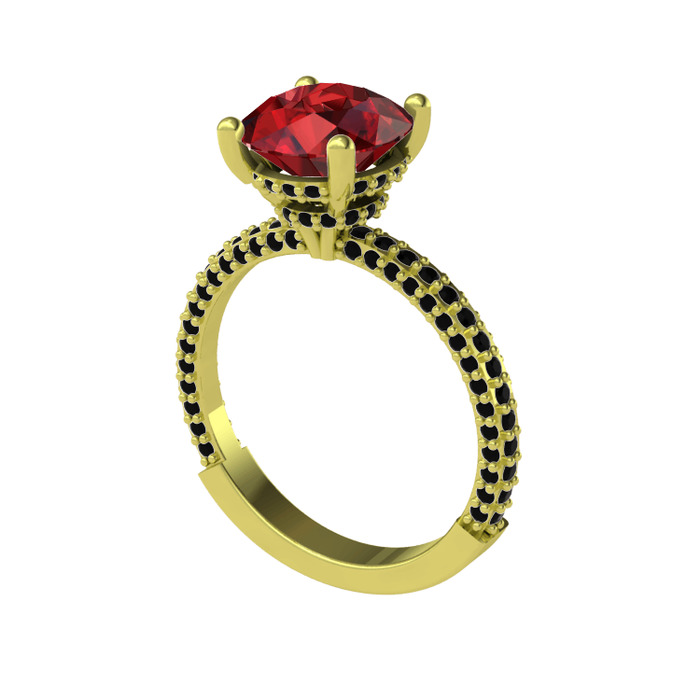 Garnet ve siyah zirkon 18 ayar altın yüzük