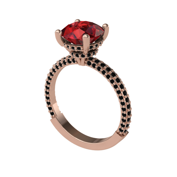 Garnet ve siyah zirkon 18 ayar rose altın yüzük