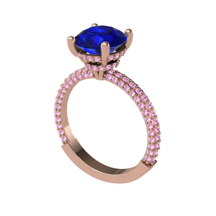 Lab safir ve pembe kuvars 925 ayar rose altın kaplama gümüş yüzük