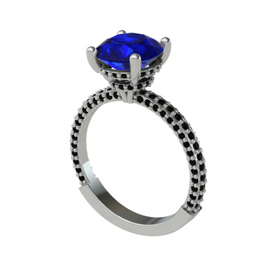 Lab safir ve siyah zirkon 18 ayar beyaz altın yüzük