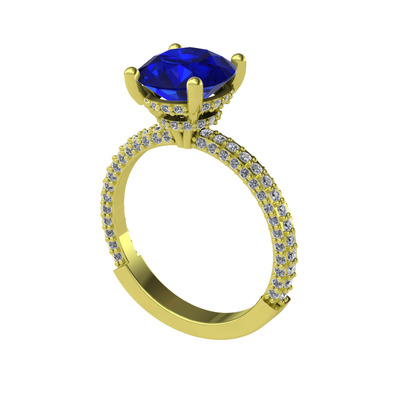 Lab safir ve swarovski 925 ayar altın kaplama gümüş yüzük
