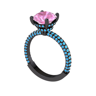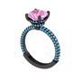 Pembe kuvars ve akuamarin 925 ayar siyah rodyum kaplama gümüş yüzük