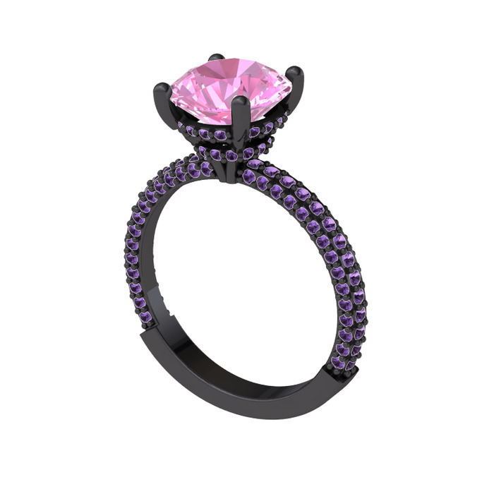 Pembe kuvars ve ametist 925 ayar siyah rodyum kaplama gümüş yüzük