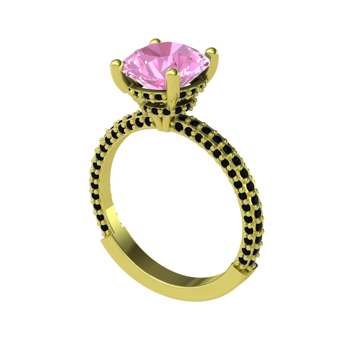 Pembe kuvars ve siyah zirkon 14 ayar altın yüzük