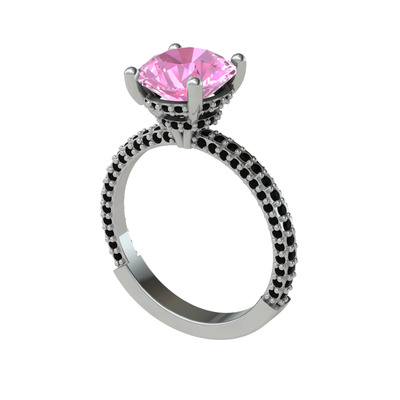 Pembe kuvars ve siyah zirkon 925 ayar gümüş yüzük