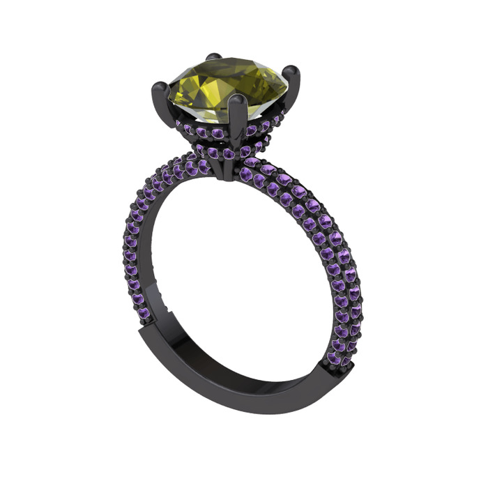 Peridot ve ametist 925 ayar siyah rodyum kaplama gümüş yüzük