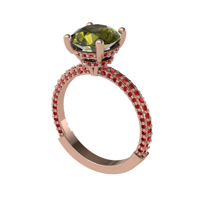 Peridot ve garnet 925 ayar rose altın kaplama gümüş yüzük