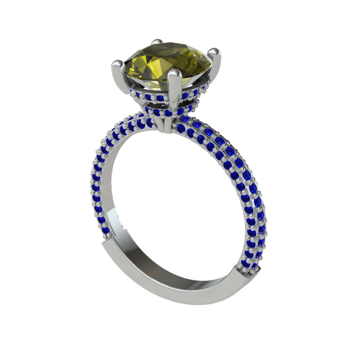 Peridot ve lab safir 18 ayar beyaz altın yüzük