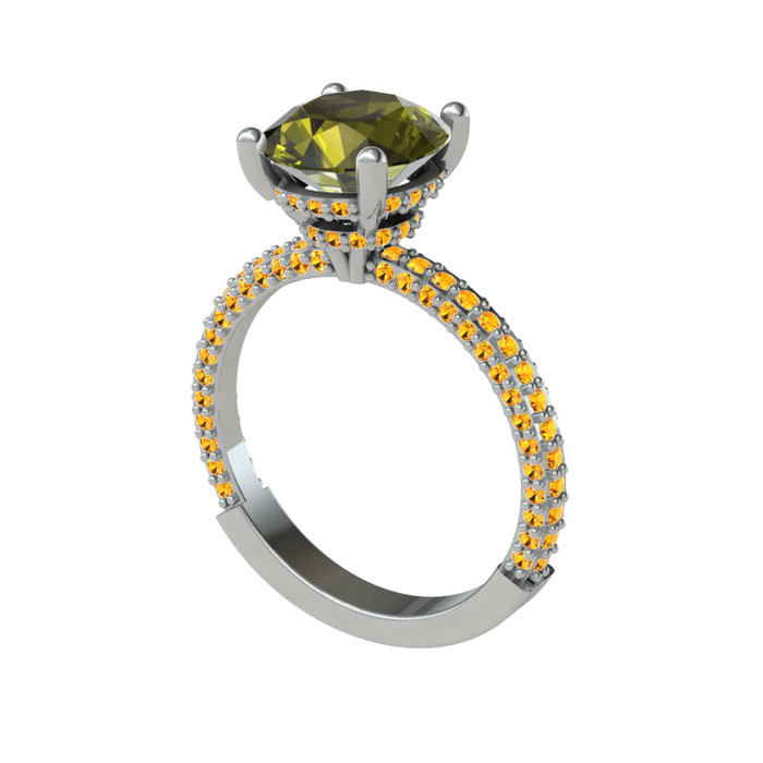 Peridot ve sitrin 18 ayar beyaz altın yüzük