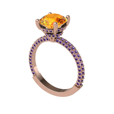 Sitrin ve ametist 18 ayar rose altın yüzük