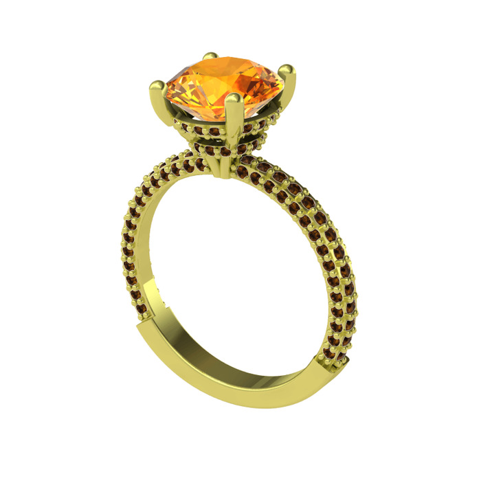 Sitrin ve dumanlı kuvars 8 ayar altın yüzük