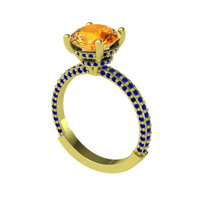 Sitrin ve lab safir 925 ayar altın kaplama gümüş yüzük