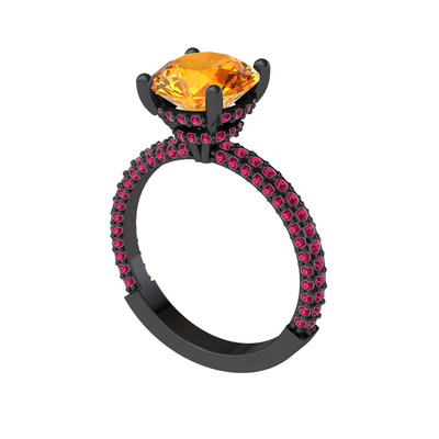 Sitrin ve rodolit garnet 925 ayar siyah rodyum kaplama gümüş yüzük