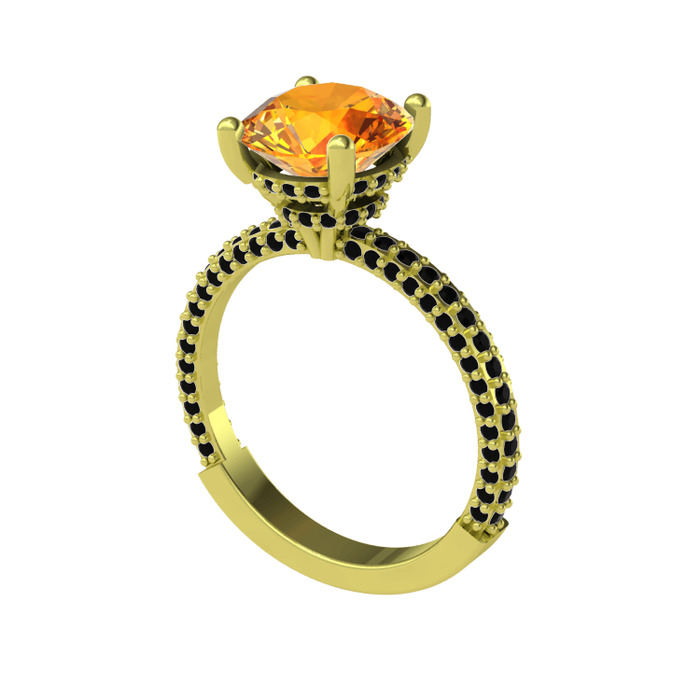 Sitrin ve siyah zirkon 14 ayar altın yüzük
