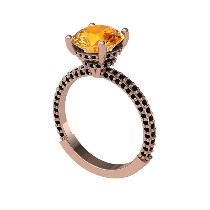 Sitrin ve siyah zirkon 14 ayar rose altın yüzük