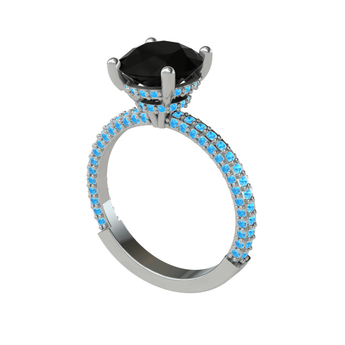 Siyah zirkon ve akuamarin 18 ayar beyaz altın yüzük