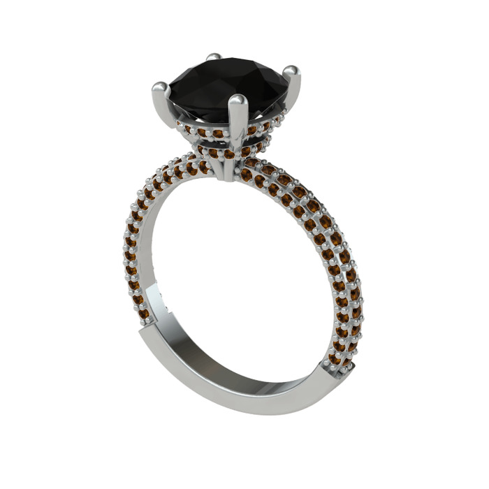 Siyah zirkon ve dumanlı kuvars 14 ayar beyaz altın yüzük
