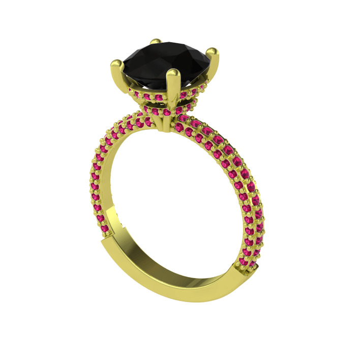 Siyah zirkon ve rodolit garnet 14 ayar altın yüzük