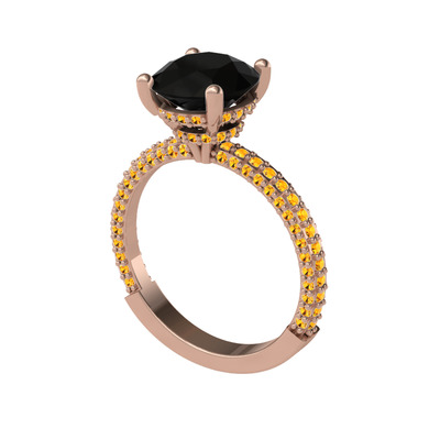 Siyah zirkon ve sitrin 18 ayar rose altın yüzük