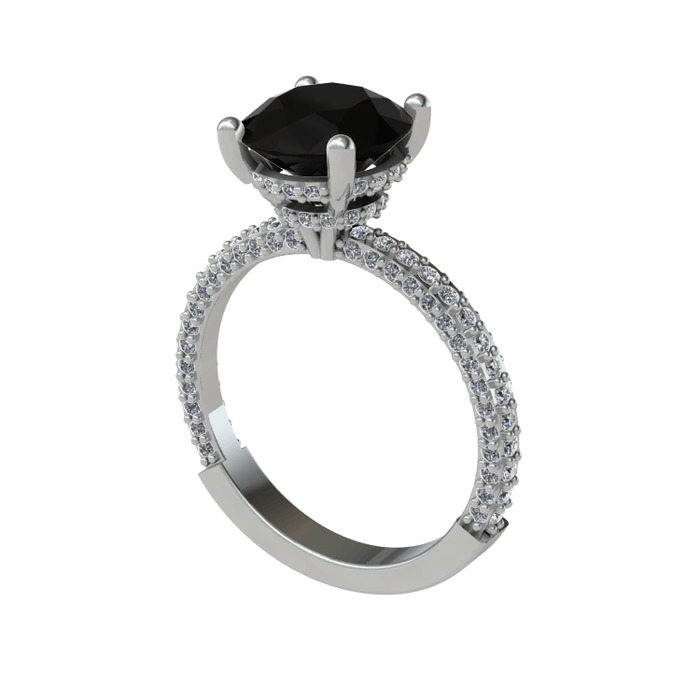 Siyah zirkon ve swarovski 18 ayar beyaz altın yüzük