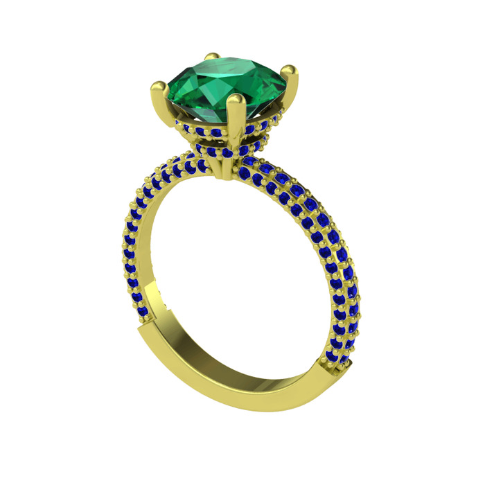 Yeşil kuvars ve lab safir 925 ayar altın kaplama gümüş yüzük