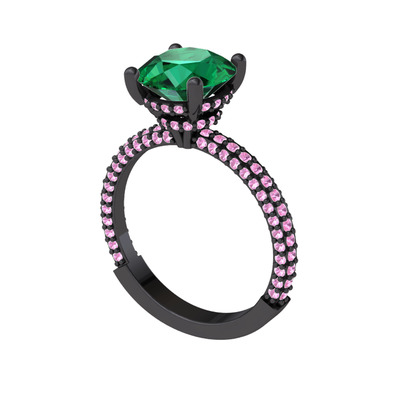 Yeşil kuvars ve pembe kuvars 925 ayar siyah rodyum kaplama gümüş yüzük