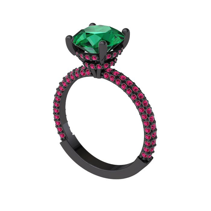 Yeşil kuvars ve rodolit garnet 925 ayar siyah rodyum kaplama gümüş yüzük