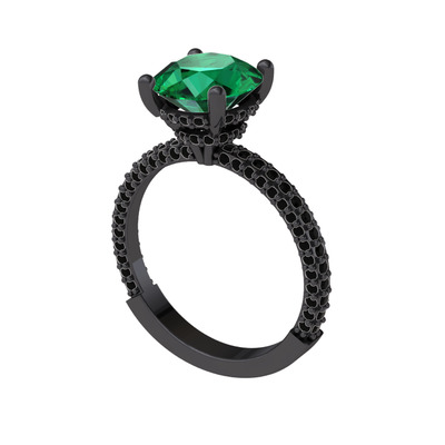 Yeşil kuvars ve siyah zirkon 925 ayar siyah rodyum kaplama gümüş yüzük