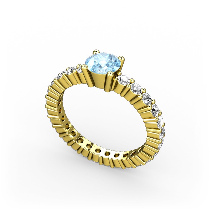 Akuamarin ve beyaz zirkon 18 ayar altın yüzük