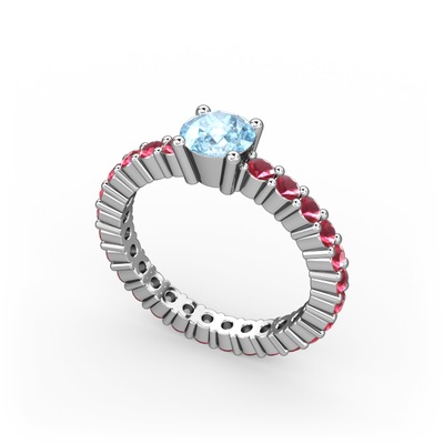 Akuamarin ve kök yakut 18 ayar beyaz altın yüzük