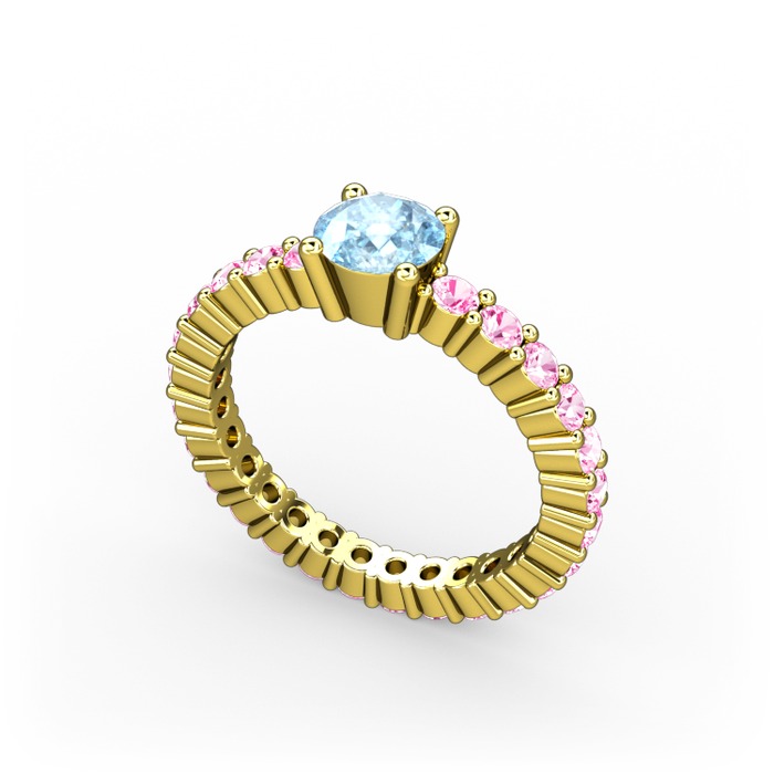 Akuamarin ve pembe kuvars 18 ayar altın yüzük